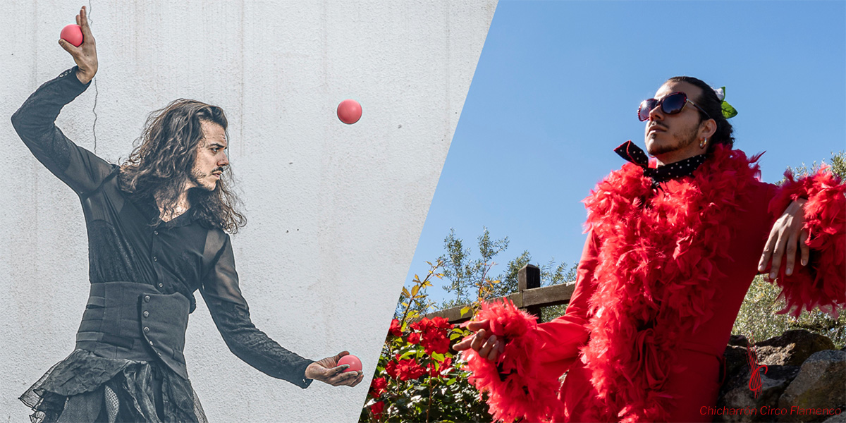 Ahí nació la posibilidad de fusionar malabares con flamenco, y así surgió Chicharrón: un personaje, bailaor flamenco y malabarista. Empecé en espacios alternativos, luego quise dar un paso más y crear un nuevo espectáculo. Durante cinco años trabajé con mujeres gitanas, y quería homenajearlas. De ahí nace ese personaje que baila y hace malabares: Chicharrón. El primer espectáculo se llamó Sin Ojana, y funcionó muy bien: gané el primer premio Panorama en Circada, luego llegaron otros 13 premios y llevamos más de 250 funciones. Ahora presentamos Empaque, el nuevo espectáculo.