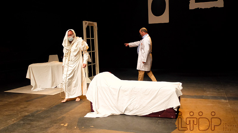 En lo que respecta al montaje que ha hecho La Troupe de Pepe de esta obra, cabe decir: que han sabido descifrar, perfectamente, que este texto ya se vale por sí mismo para lucirse. Así que se han centrado en que la interpretación de su elenco, sostenga a los personajes para que éstos hablen por sí mismos. Siendo que no hace falta llevarlos a ningún lugar más lejos de cómo están planteados en el texto, favoreciendo que los que hemos compuestos el público, no se nos nuble la vista para entender de qué trata su contenido entre tantos disparates.
