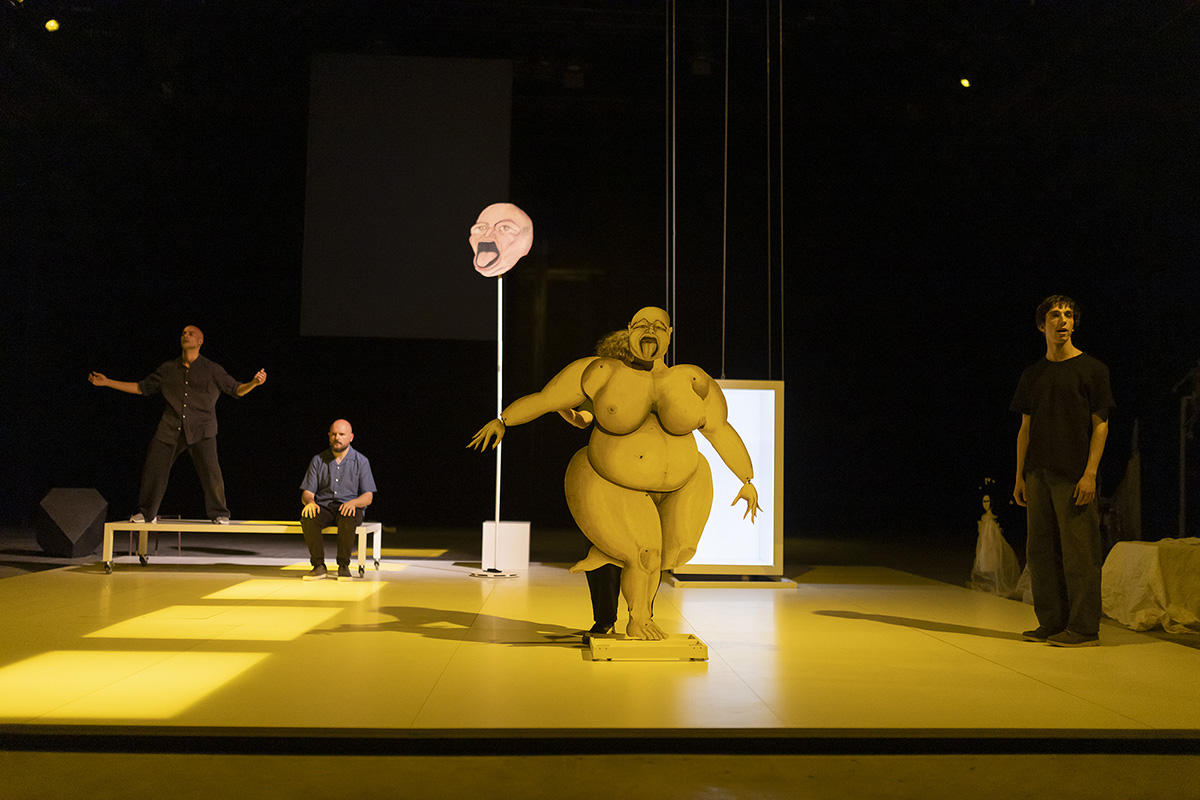 Los soliloquios rompían el ritmo trepidante de elementos, lo sosegaban, con momentos crudos y extensos de texto recitado al desnudo, con un cariz apocado y sensible. Algo se me escapaba de esta sensibilidad. El diseño sonoro, que daba todo el espacio al cante y la experimentación vocal del ilicitano era impecable, mágico. Qué completitos todos los participantes: bailan estupendamente, manejan los títeres, recitan, tocan el piano (especialmente bien, por cierto), cantan… Qué bien canta el Niño.